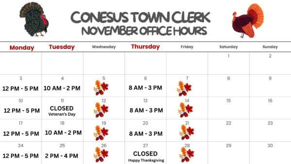 Town Clerk Hours Town Clerk Hours for November 2025 November 5, 2025 Written by Town Clerk Continue reading