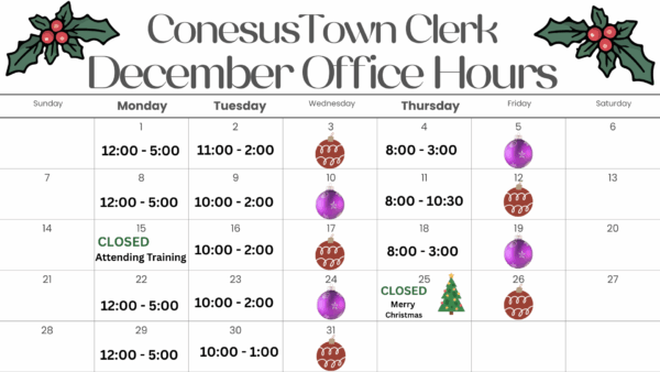 Town Clerk Open Hours December 2025