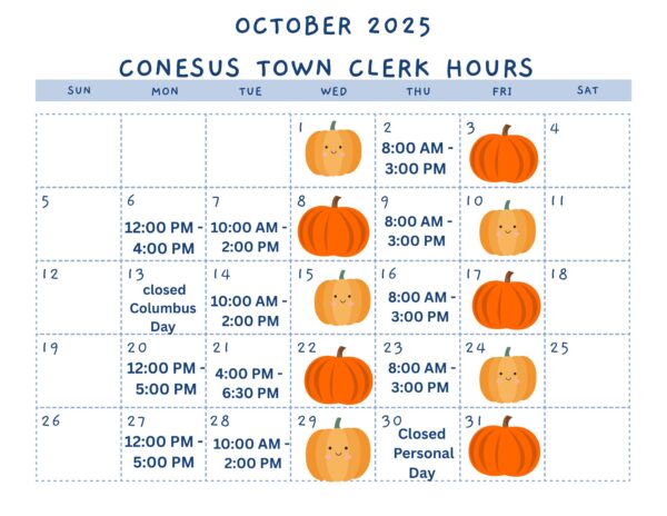 Home Blog Town Clerk Hours for October 2025 October 14, 2025 Written by Town Clerk in Town Clerk Hours